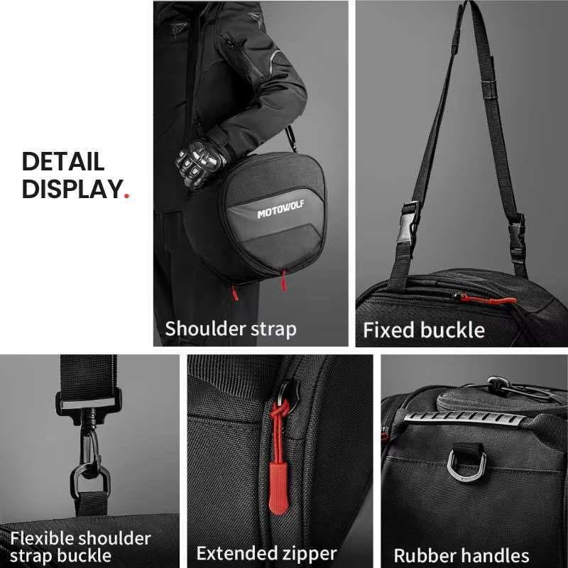 - Multi-Use Functionality : Can be mounted on a fuel tank or worn as a shoulder bag